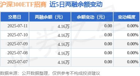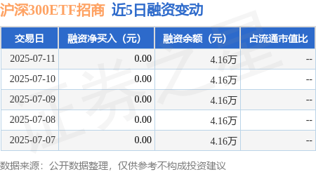 本站消息,7月11日,沪深300ETF招商(561930)融资买入12.86万元,融资偿还12.86万元,融资净买入0.0万元,融资余额4.16万元。